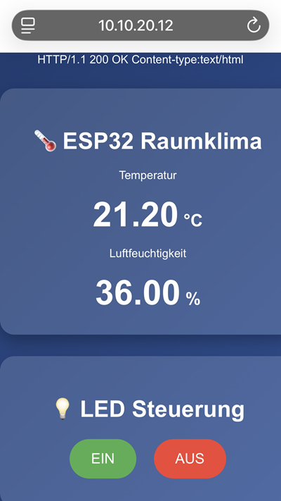 Mit einem kostengünstigen ESP32 Mikrocontroller kann die Kontrolle über Sensoren und Aktoren direkt vom Webbrowser aus erfolgen, ohne Cloud-Abhängigkeit. Der ESP32 fungiert in diesem Beispiel als Mini-Webserver, damit Daten angezeigt und angeschlossene Aktoren gesteuert werden können.